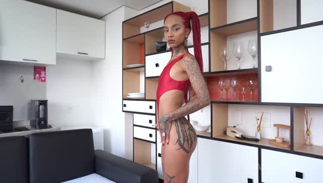 Lara Rouge, sexy Brazilian ebony cutie loves 2 dicks in her ass (Anal, DAP, 0% pussy, foot fetish, ATM, gapes, goth, alt model, 2on1 )